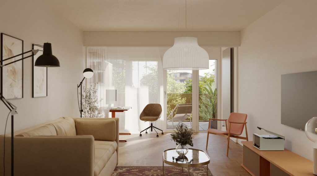 Nous proposons des appartements rénovés et neuf, allant du 2.5 au 5.5 pièces. Le nouveau bâtiment, qui abritera 30 logements, est adapté aux normes PMR.